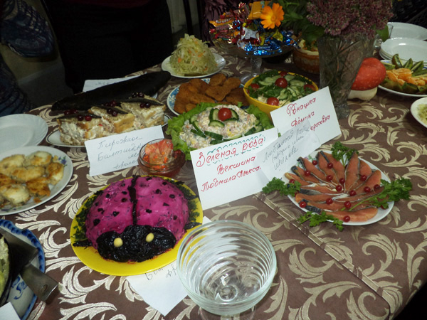 Конкурс кулинарного искусства прошел в Обществе инвалидов Дзержинского района Ярославля в среду, 15 октября. Каждый участник, а их набралось около ста, представил на суд жюри приготовленные по собственным рецептам блюда четырех видов – салаты, бутерброды, заливное и горячее. Учитывалось также и оформление блюд – кто-то сделал салат в форме божьей коровки, кто-то ромашки, а кто-то изобразил улыбку боцмана.