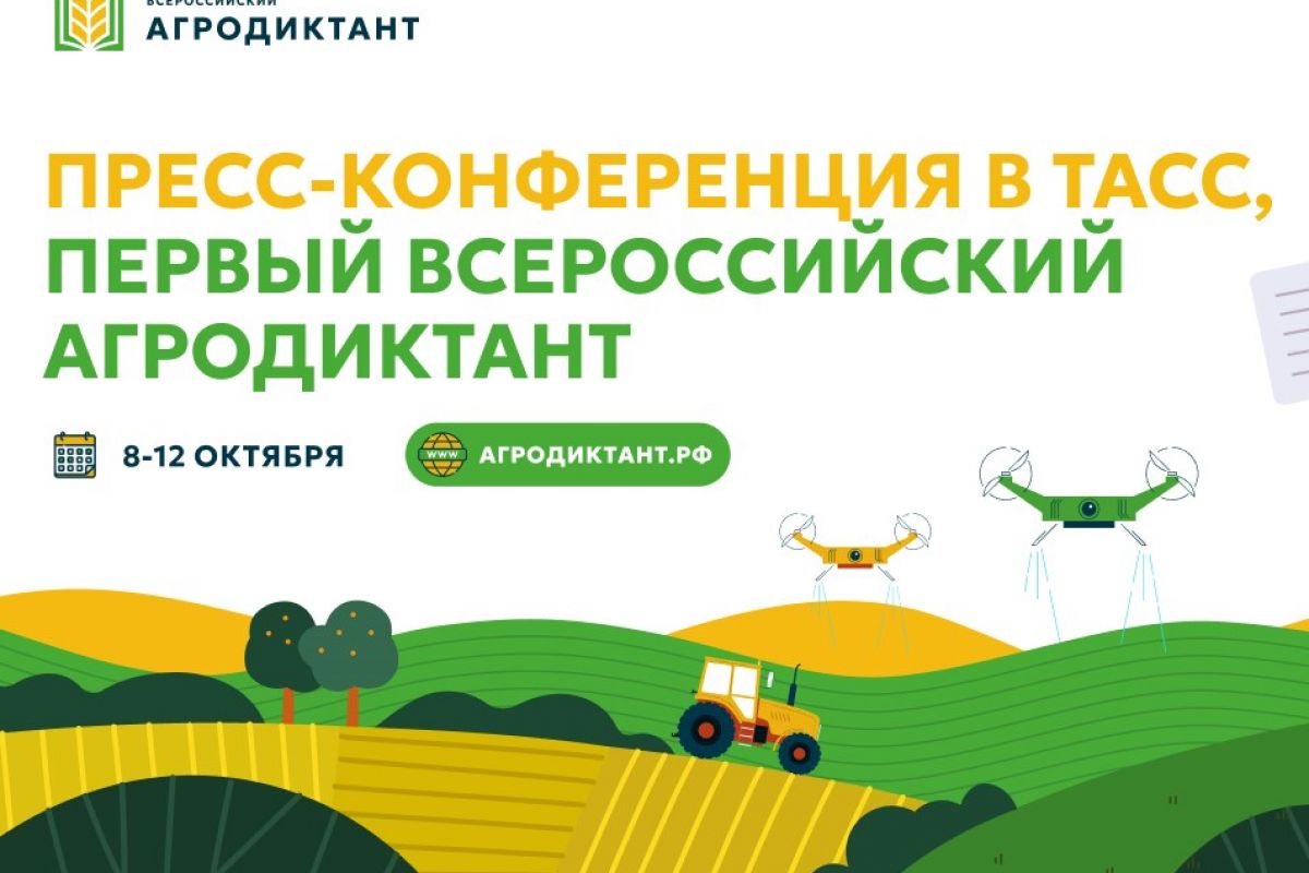2 октября в 15:30 в пресс-центре ТАСС состоится пресс-конференция, посвященная проведению Первого Всероссийского агродиктанта, который пройдет с 8 по 12 октября.